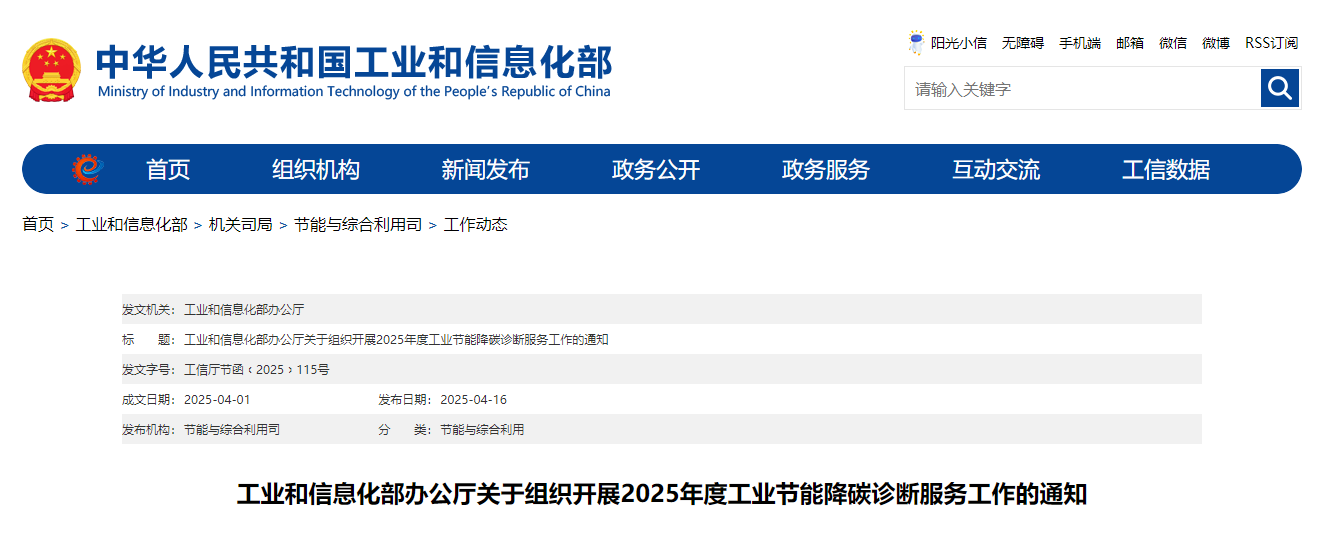 為加快重點行業(yè)領(lǐng)域節(jié)能降碳改造,持續(xù)推動工業(yè)能效提升和碳排放降低,現(xiàn)組織開展2025年度工業(yè)節(jié)能降碳診斷服務(wù)工作。有關(guān)事項通知如下: