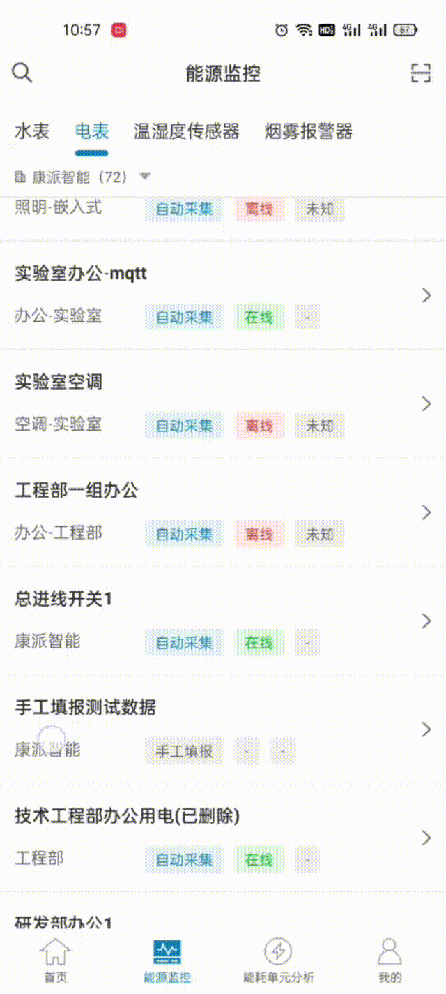 用電量、綜合能耗、碳排放量等能耗總覽,設備在線狀態預覽。